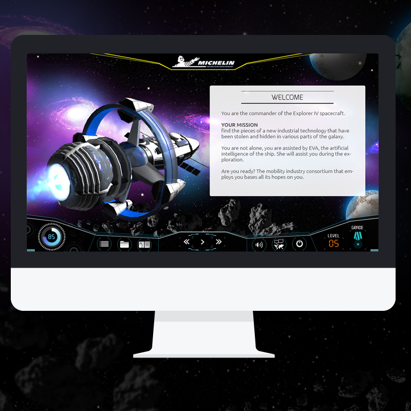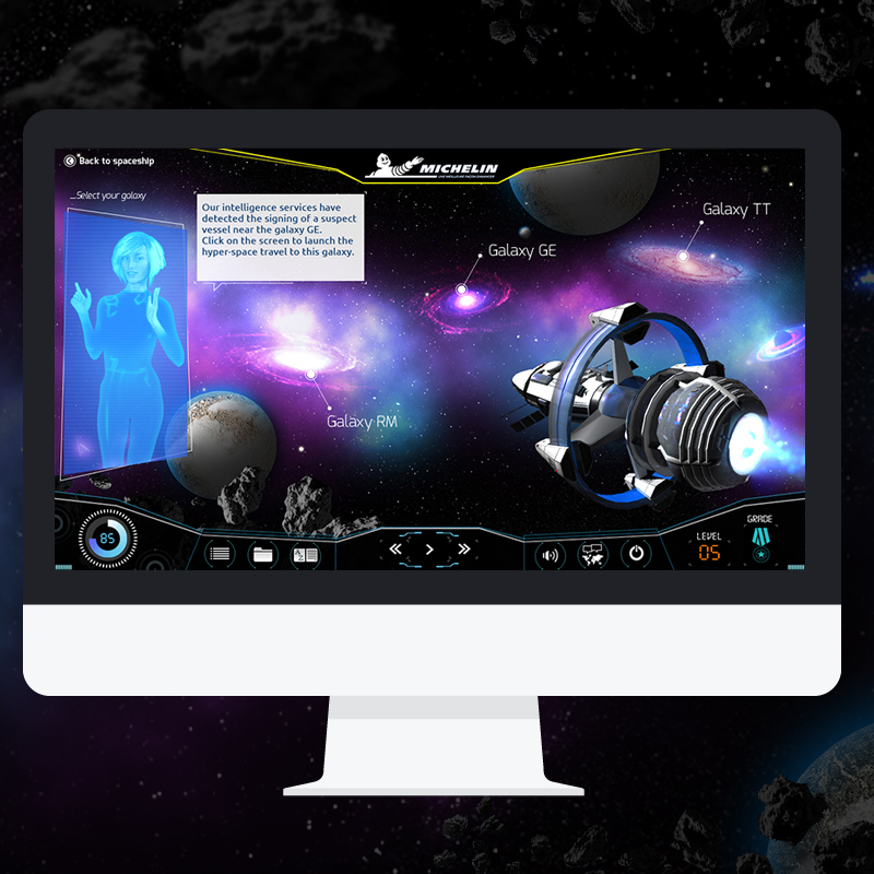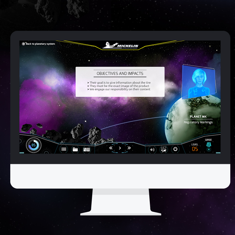 Le concept pédagogique propose une aventure spatiale scénarisée. L'apprenant se met dans la peau d'un capitaine parcourant l'univers. À bord de son vaisseau vieillissant, il est à la recherche de pièces mécaniques rares. L'hologramme d'une IA l'accompagne dans cette aventure.