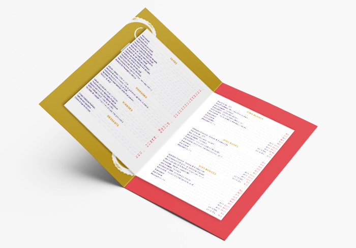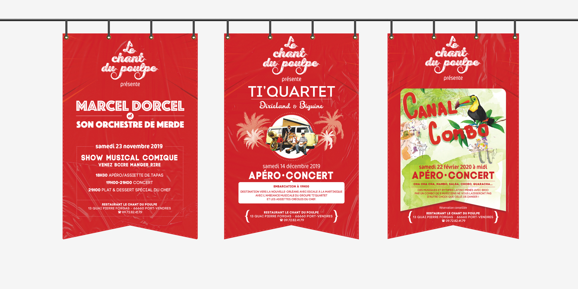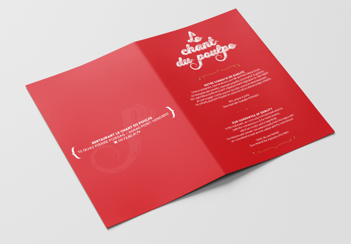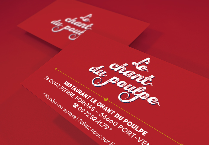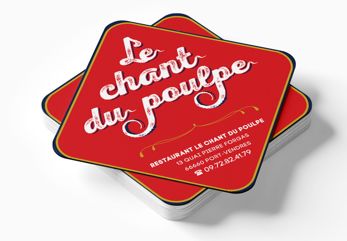 Création des supports avec la nouvelle charte : signalétique, carte de visite, carte de menu, sous bock, t-shirt et kakémonos.