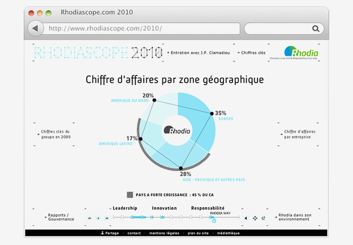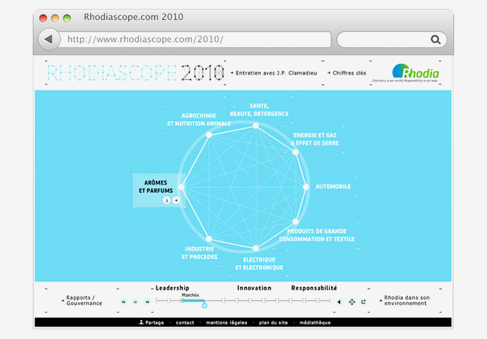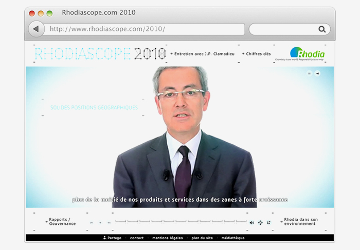Création d'un rapport annuel intéractif pour Rhodia - Site en full flash.