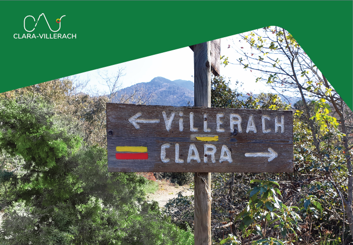 La couleur verte évoque le milieu naturel et la forêt. La petite boucle du “V” sang et or affirme que Clara- Villerach est une commune du pays catalan mais symbolise aussi bien les habitants qui passent d’un village à un autre que le dynamisme d’une commune prête à gravir les défis de demain.